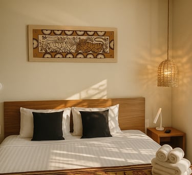 Un espacio amplio, luminoso y con un encantador toque artesanal que invita al descanso total.